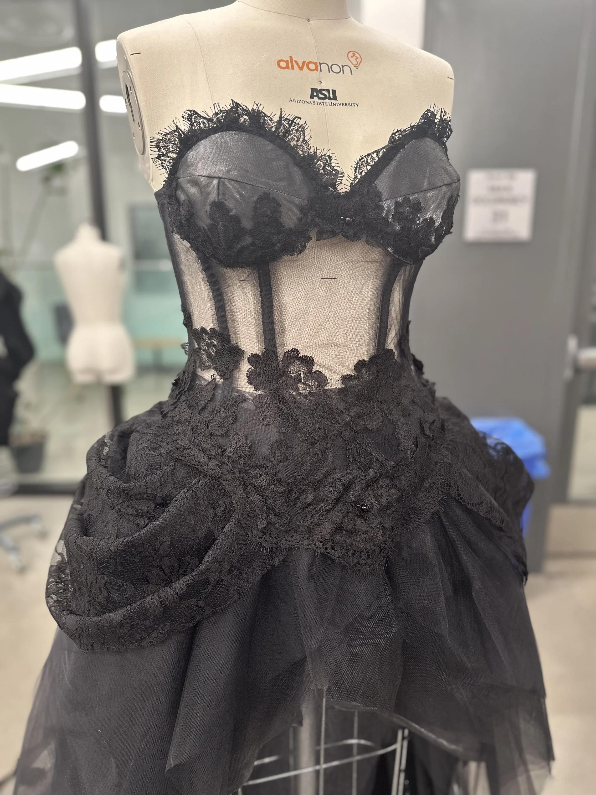 Receiving the Solstiss Award was both an honor and a turning point in my practice. With a $3,000 award in luxury French lace, I was able to push my exploration of historically rooted textiles in modern design. This highlight celebrates my commitment to craftsmanship and innovation—fusing delicate materials with bold, contemporary silhouettes that honor lace’s legacy while reimagining its future.